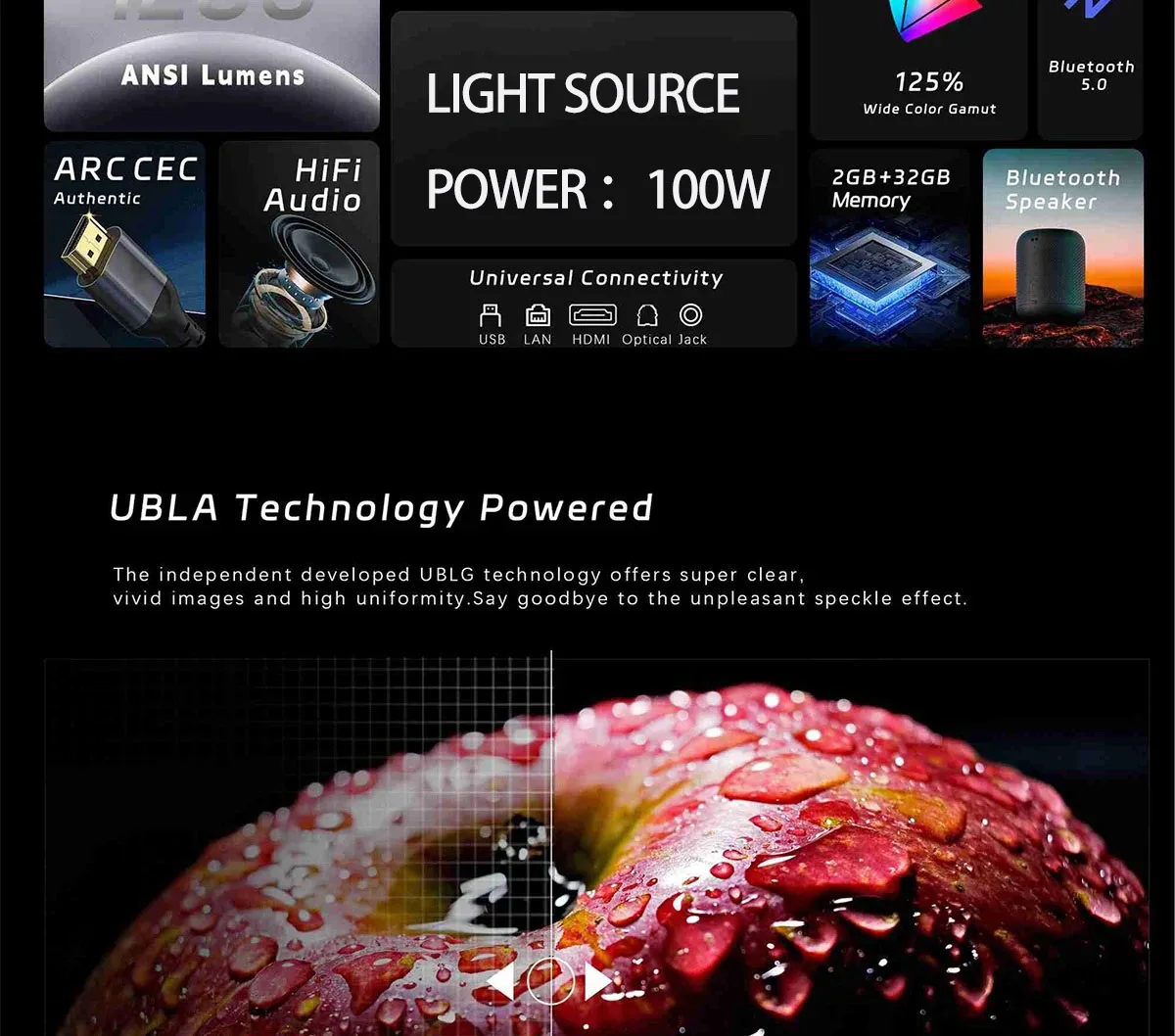 🌈 1200ANSI enjoys a huge screen, high brightness home theater grade, clear image quality, higher contrast and contrast, more natural color saturation, and higher transparency.